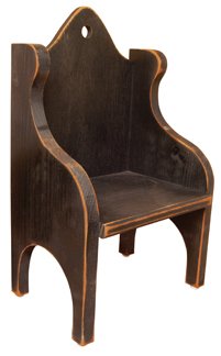 This country style chair is stained black and distressed around the edges for a primitive feel. The perfect size to display your favorite dolls. There is nylon feet attached to the legs to help protect your furniture. It is 17-1/2" high x 9-1/2" wide x 7-1/2" deep..../ Doll Chair Country Rustic Primitive Bench Shelf / Rustic Chair